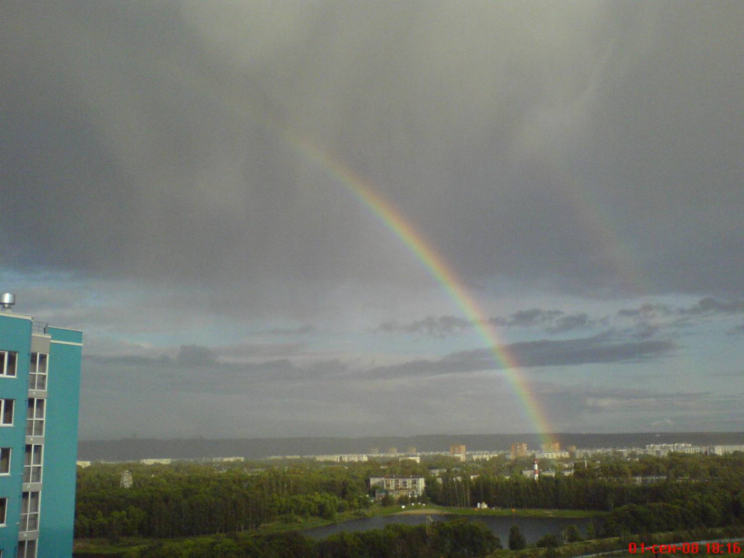 Две радуги над нашими домами. Красота! (Это не дефект, было точно 2 радуги).... На фото.